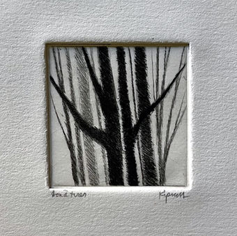 Kipniss's first print, an etching, was made in 1967 at Pratt Graphics Center. That year he began producing drypoints, which he has made periodically since, although in smaller numbers than his works in other mediums. Almost all of his drypoints have the large areas of white typical of that medium, creating much more of an effect of outdoor light than his mezzotints. Springfield, O. (1991) shows the typical velvety black lines of the drypoint, caused when ink adheres to the raised burr next to the furrow, but Kipniss's lines are placed more tightly than is usual in drypoints. The work is in three institutional collections, including the British Museum, London. After a long hiatus from drypoint, Kipniss has returned to the medium in his later years. Since 2016, he has completed several atmospheric compositions in the medium, working with Anthony Kirk Editions.